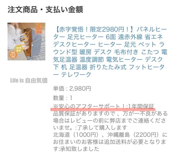 1年間の品質保証がついていたため被害を報告し返金要請をした