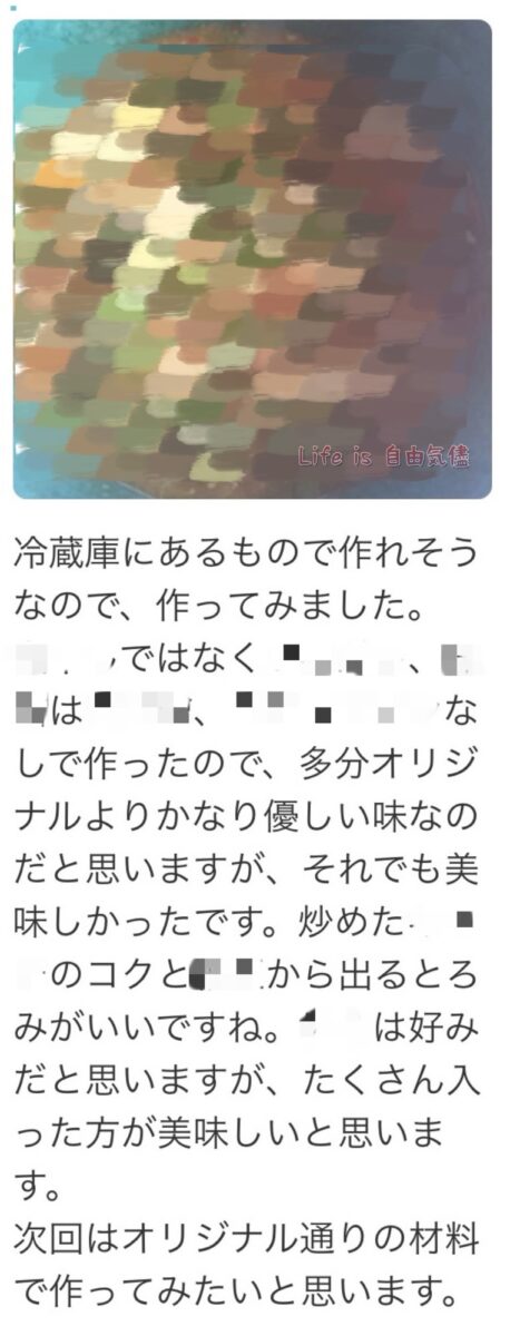 他人様のレシピを改変し、全く別の料理を完成させ、それを嬉々として報告する