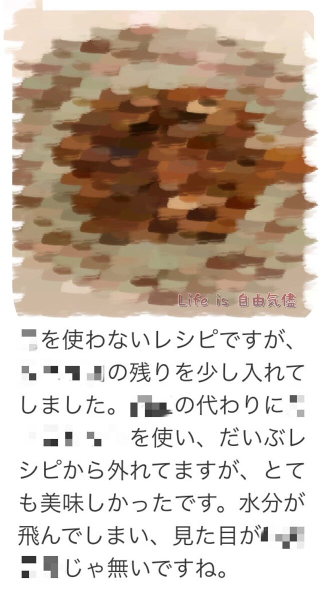 レシピを大きく外れ見た目も違うと自覚していて尚、完成品の写真まで貼り付けるその心とは